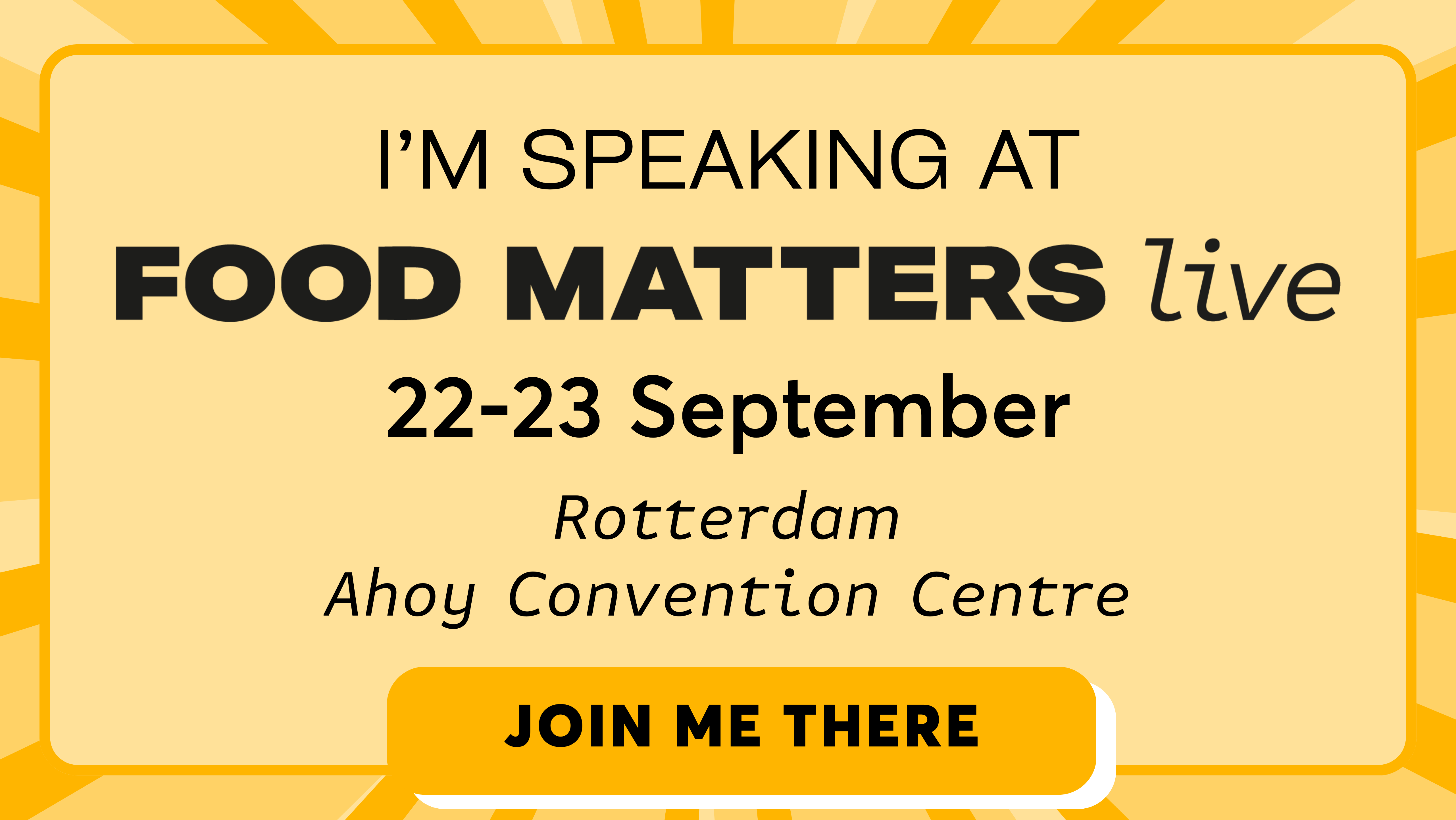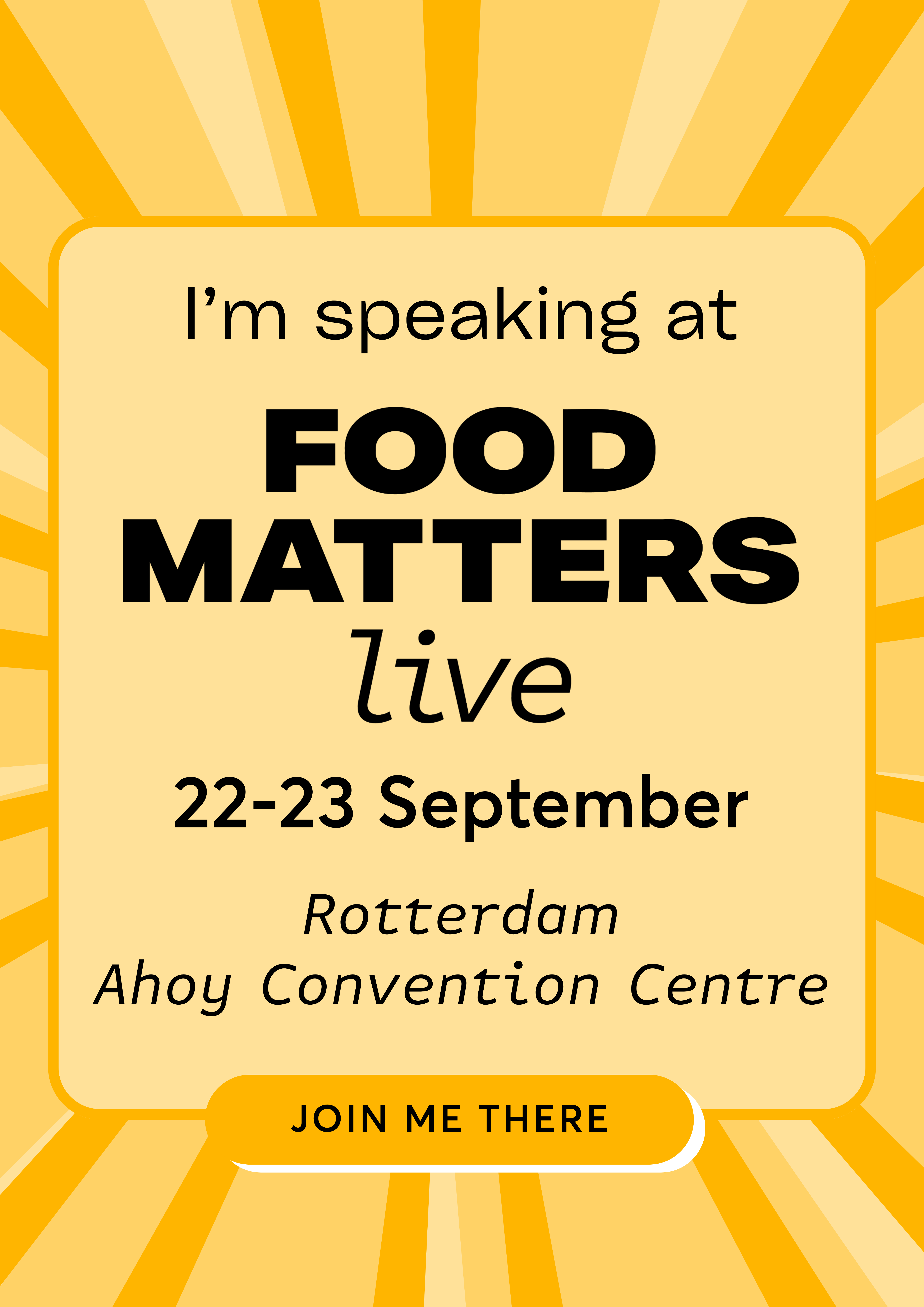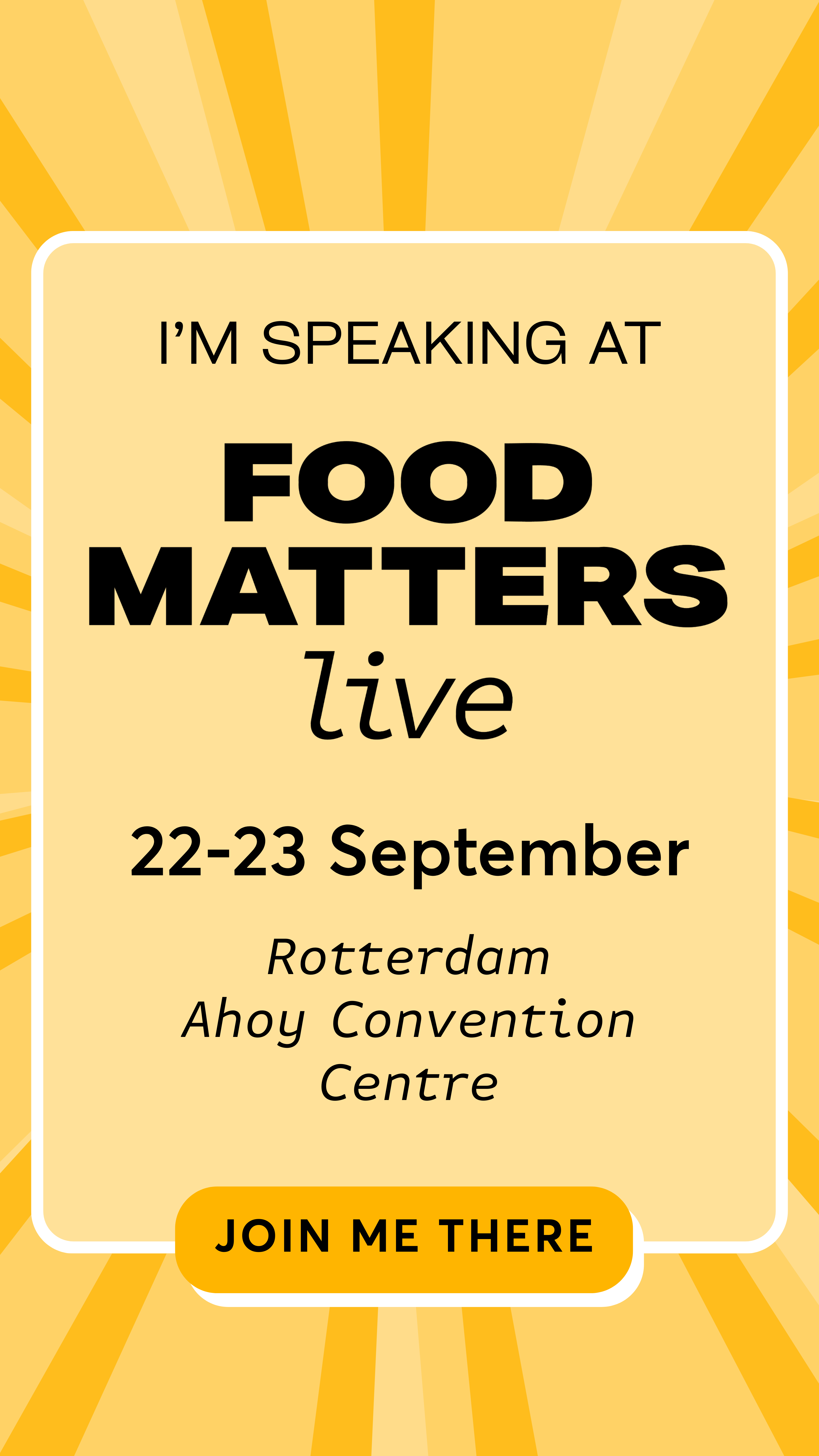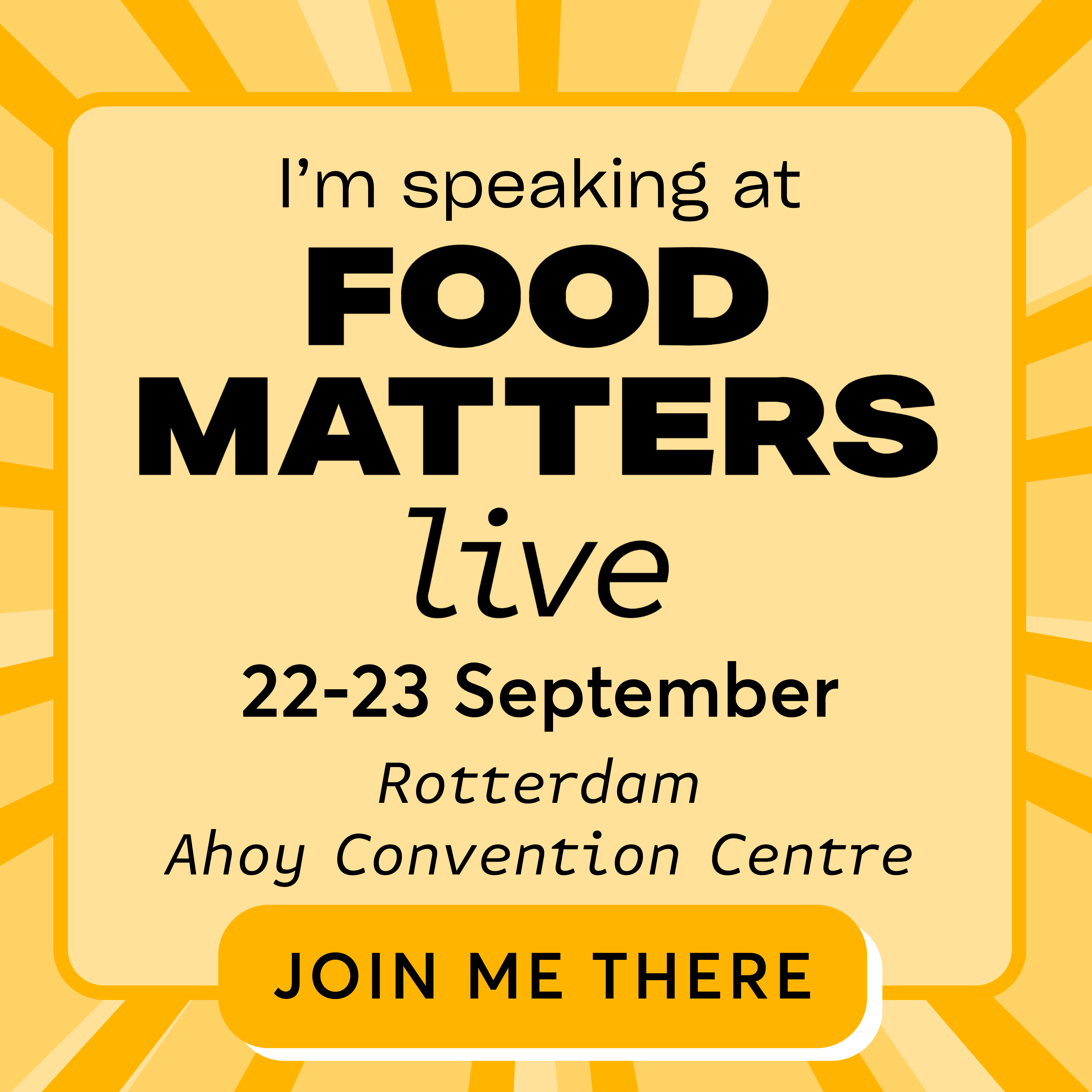 I’m thrilled to be speaking at Food Matters Live on [22/23 September] in Rotterdam. I’ll be sharing my perspective on [insert your theme] on the [insert relevant stage].